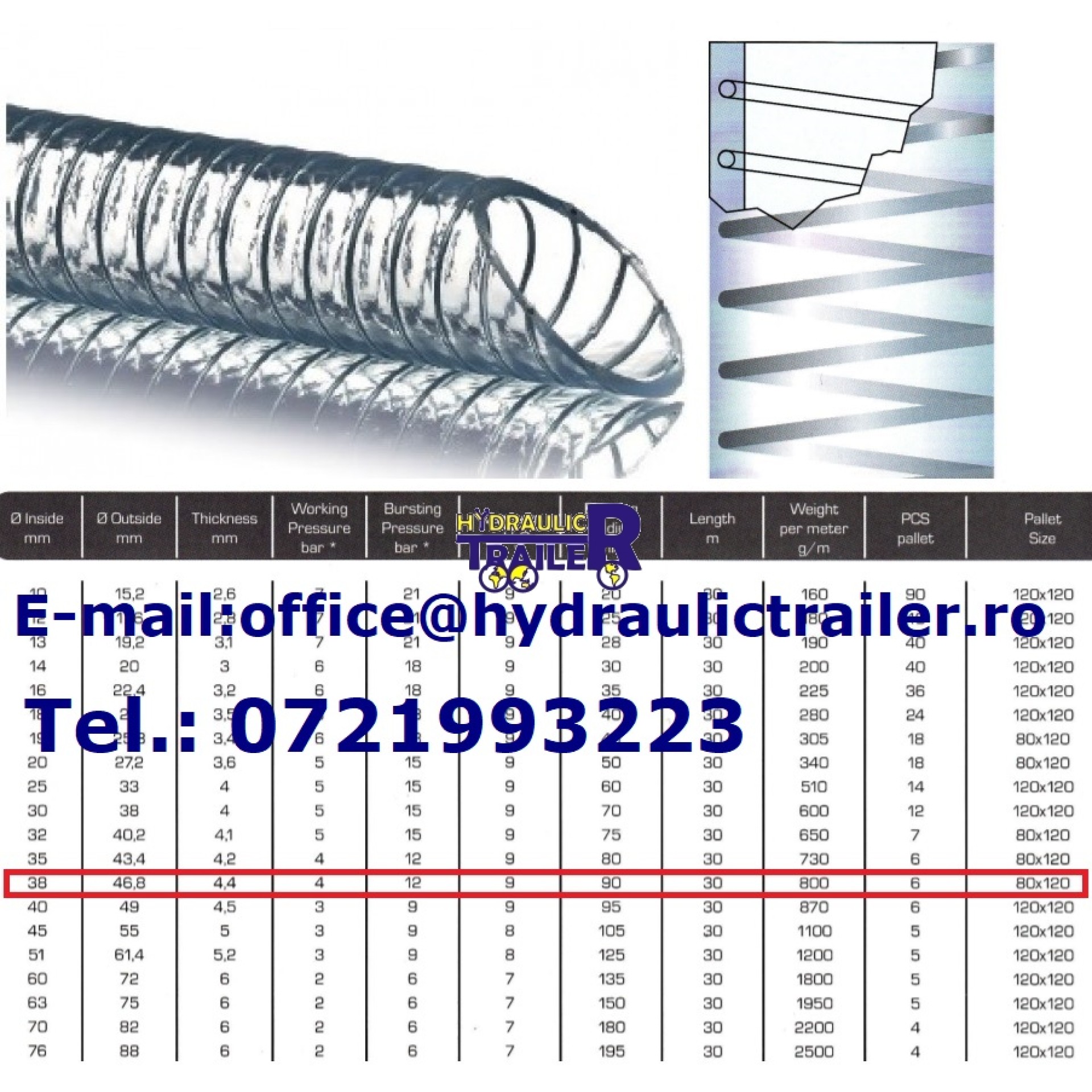 FURTUN ASPIRATIE PVC CU INSERTIE METALICA 38MM Interior:PVC, transparent, suprafata neteda, utilizabil industria auto si in industria alimentara. Diametru interior